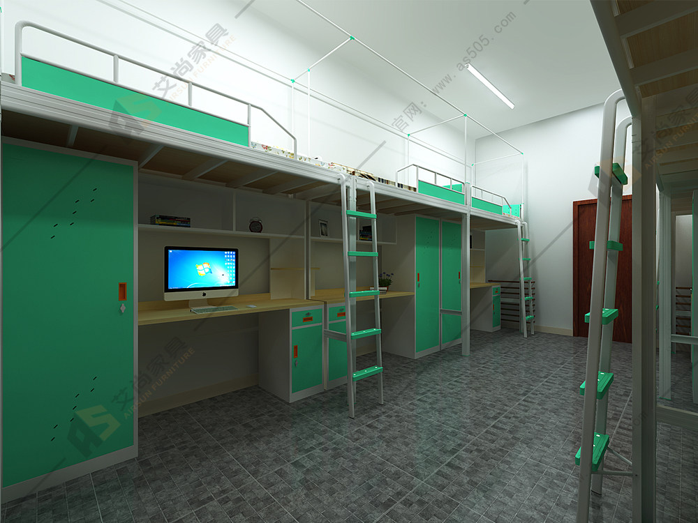 艾尚家具不僅生產公寓床,宿舍家具系列,而且還免費出宿舍整體解決改造方案。你可以在我們官網中查看幾種,《六人間改造方案》《八人間改造方案》《四人間改造方案》。我們會派人去您的現場中查看測量尺寸進行改造。下圖為他所訂購的公寓床↓