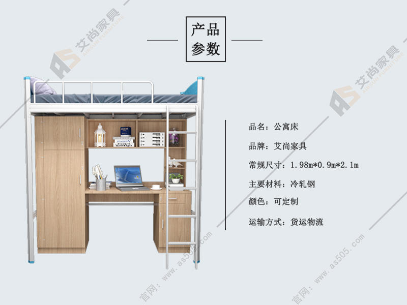 從款式上來劃分,公寓床可以分為:單層床、雙層床、組合公寓床等。根據(jù)自己的需求,選擇一款適合放在宿舍的床,讓生活充滿了幸福的色彩。