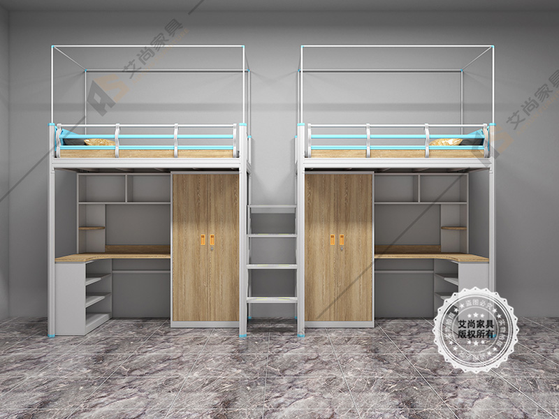 艾尚家具多年專業(yè)生產(chǎn)定制銷售宿舍公寓床,選用材質(zhì)為優(yōu)質(zhì)冷軋鋼,中空異形材,永久不生銹,個(gè)性美觀。每張床可以承重500kg,全圍護(hù)欄235mm高,樓梯帶有防滑條,安全性能高。全床無螺絲,卡式連接更新穎,符合現(xiàn)代化審美。