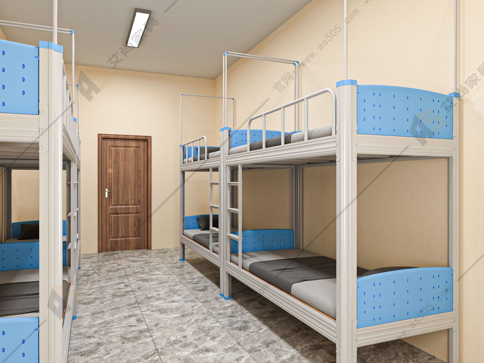 顏色太艷麗的上下鋪床,睡得時間長了會影響心理健康,建議選用淡雅穩重的顏色,盡量與宿舍的裝修風格搭配,看起來比較自然,能提高宿舍格調。
