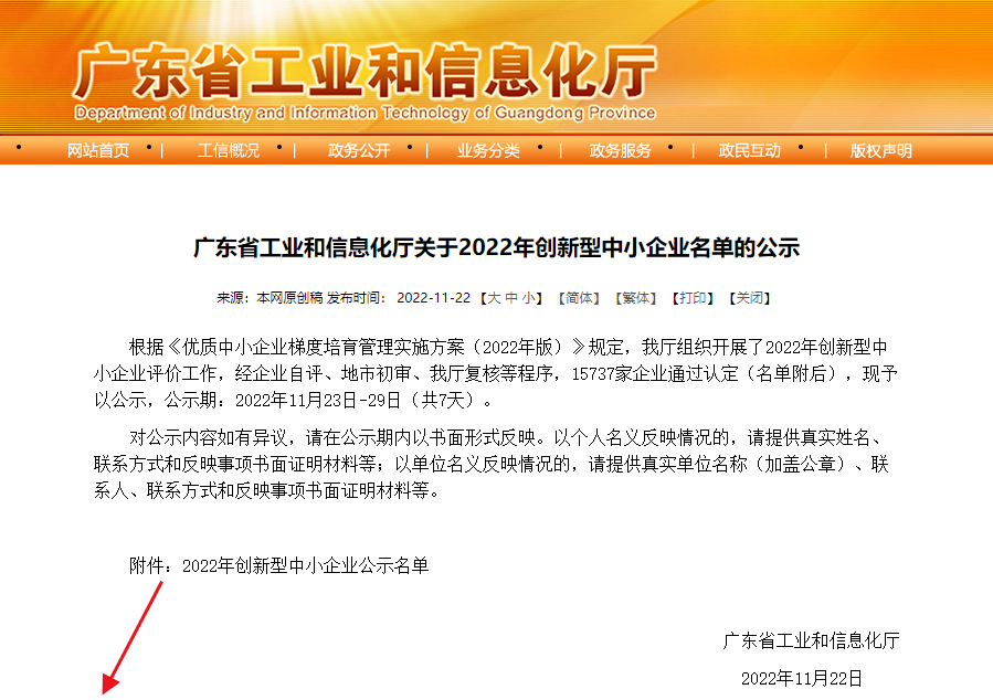 近日廣東省工業和信息化廳關于 2022 年創新型中小企業名單公示,廣東艾尚家具有限公司成功入選!