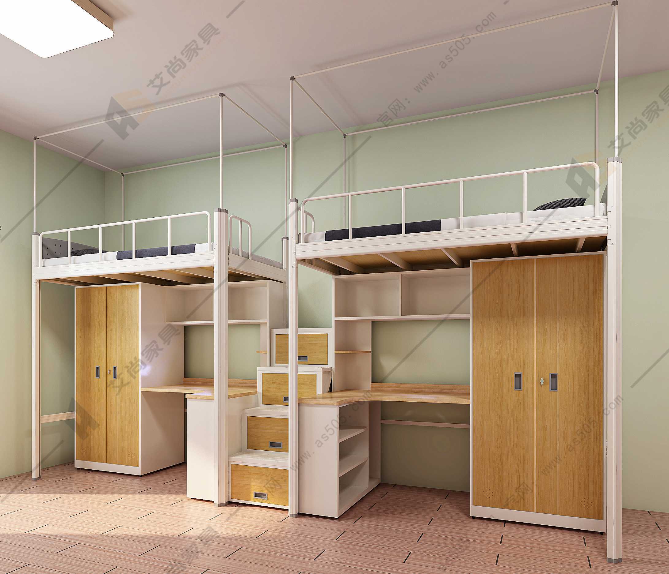 搭配公寓床風格和顏色時建議和宿舍的風格相匹配,這樣定制的公寓床會很好地融入到宿舍環境中,不會顯得異常突兀。提高學生公寓床使用時的體驗感,還包括整體帶來的視覺效果。