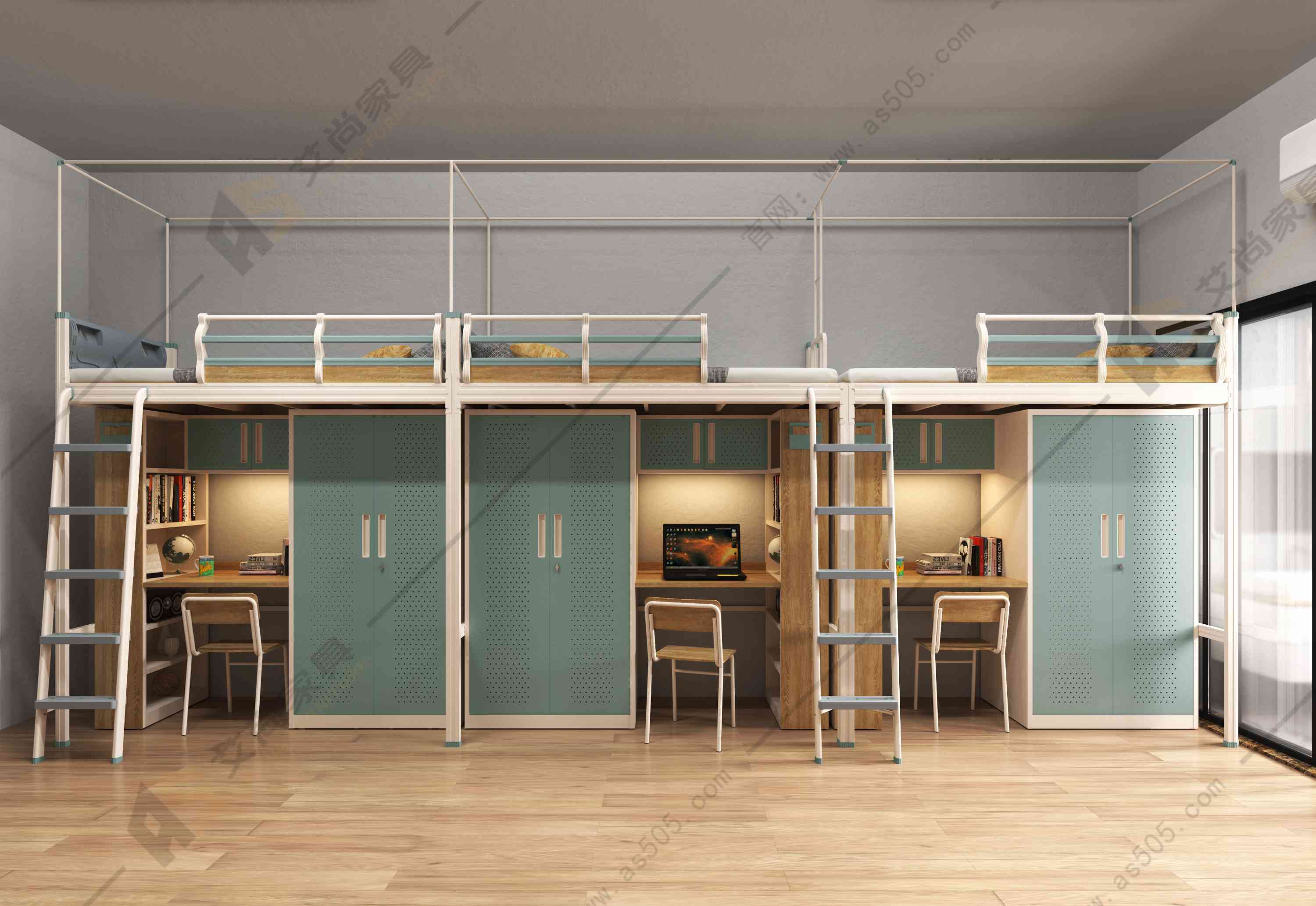 艾尚宿舍家具經常收到這樣的詢問:“你是高低床制造廠家嗎?你做過大學生用的高低床嗎?”進一步了解后,發現原來客戶口中的“大學宿舍用高低床”其實就是我們所說的公寓床,也就是,桌柜一體式公寓床。