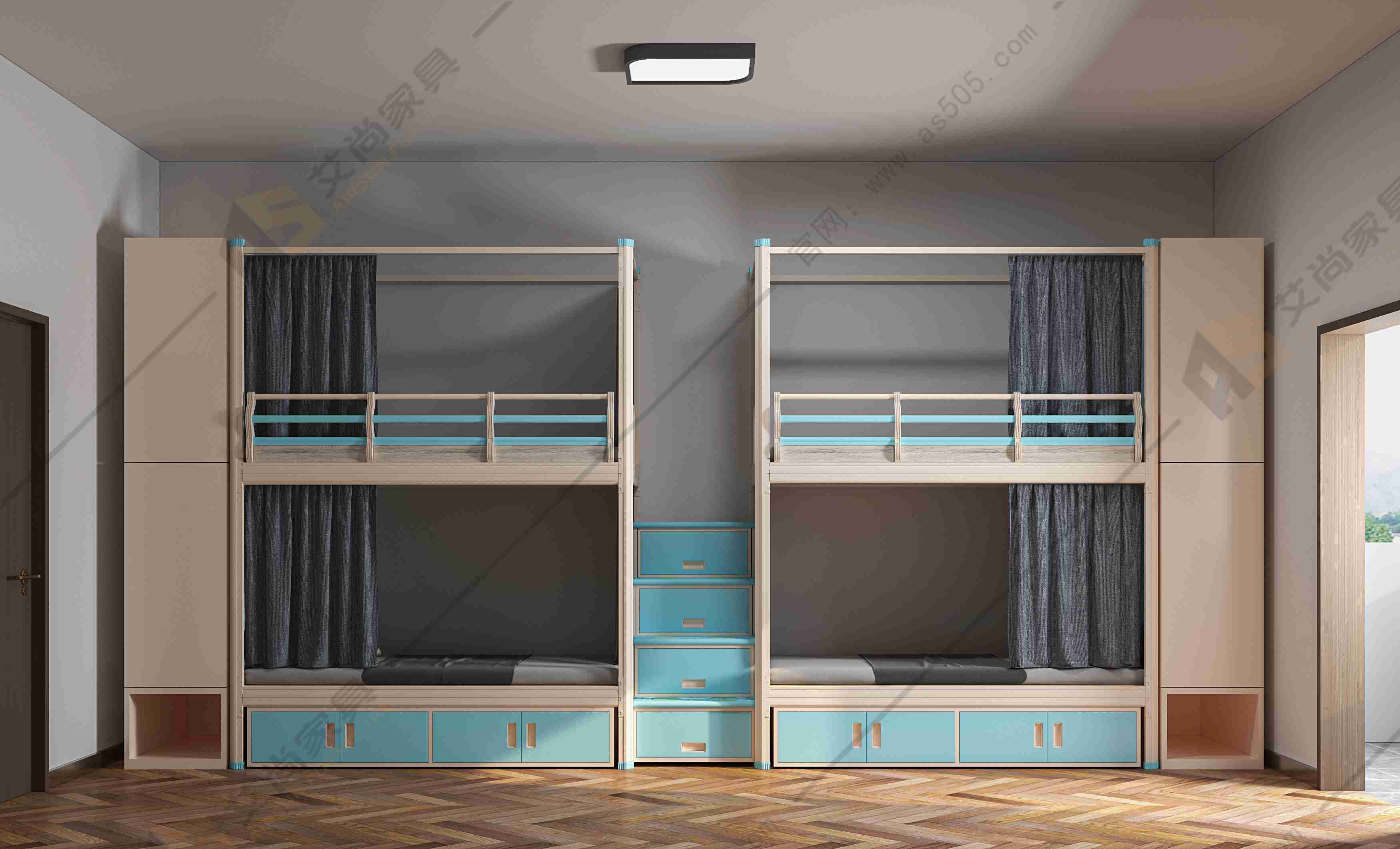 艾尚組合式公寓床功能齊全,款式豐富,書柜、書桌、抽屜、衣柜、儲物柜應有盡有,根據(jù)床位數(shù)又分為單體公寓床、兩連體公寓床、三連體公寓床,尺寸和功能均可按需定制。