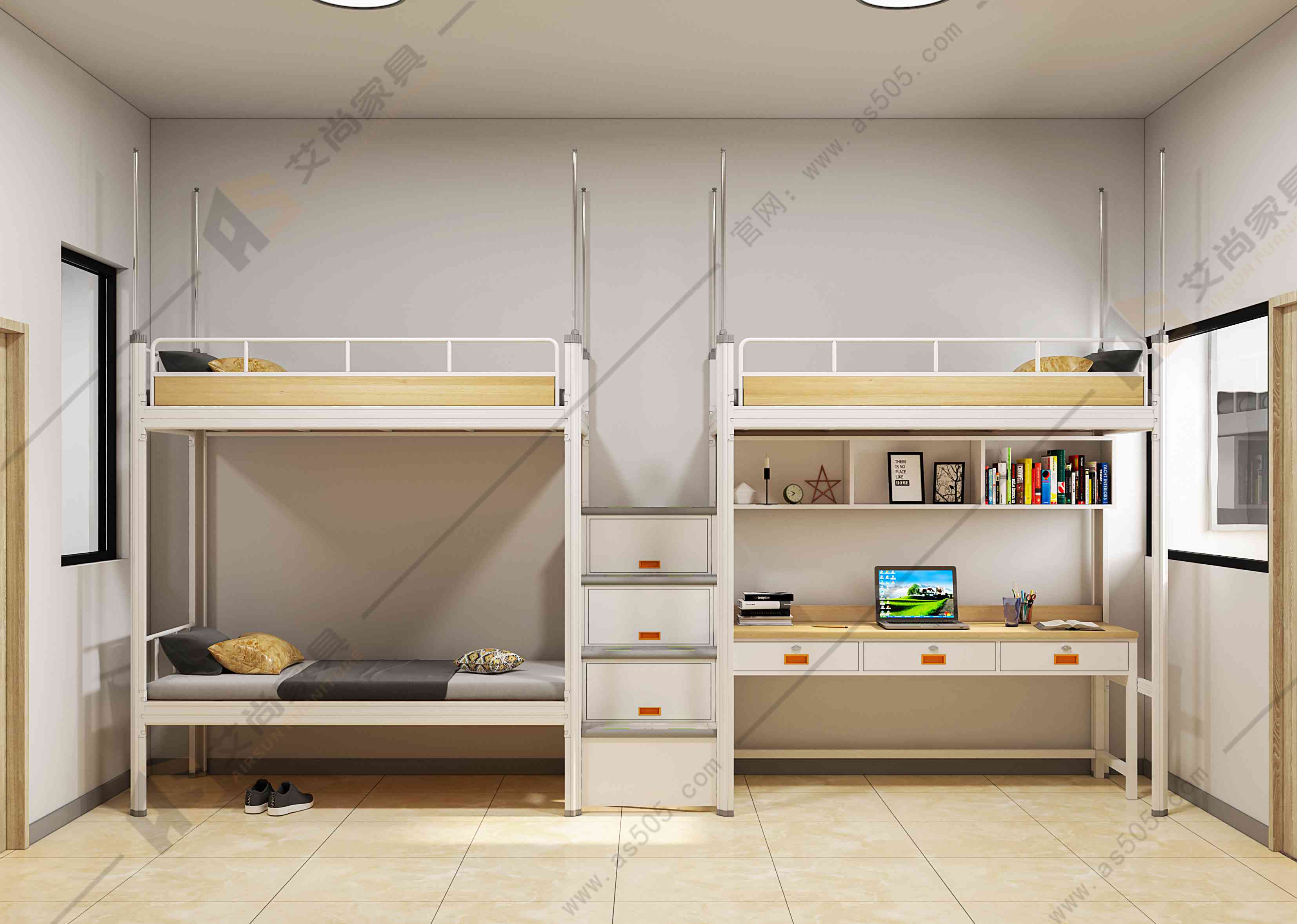 和傳統(tǒng)的上下鐵架床不一樣,員工宿舍床保持了員工個(gè)人空間使用,床下的收納空間、電腦桌等都能作為各自私人使用,艾尚員工宿舍床中梯的收納空間也可貼標(biāo)簽分配均勻,這樣不僅避免了很多宿舍矛盾,也能讓宿舍空間更加整潔有序,讓企業(yè)更好管理。