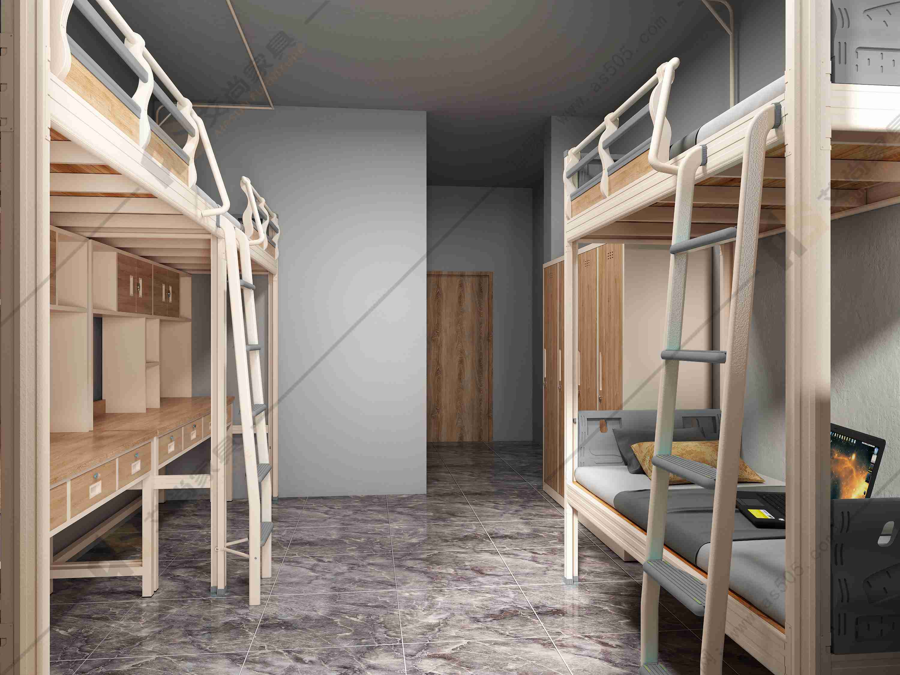 學生宿舍床一般有兩種樣式,一種是上下床,這在初高中出現較多,一個宿舍常見可放四張上下鋪,同時可住八人。另一種就是上床下桌樣式的,通常在大學宿舍較為常見,由于配置不同,這兩種樣式的價錢也有些許差異。
