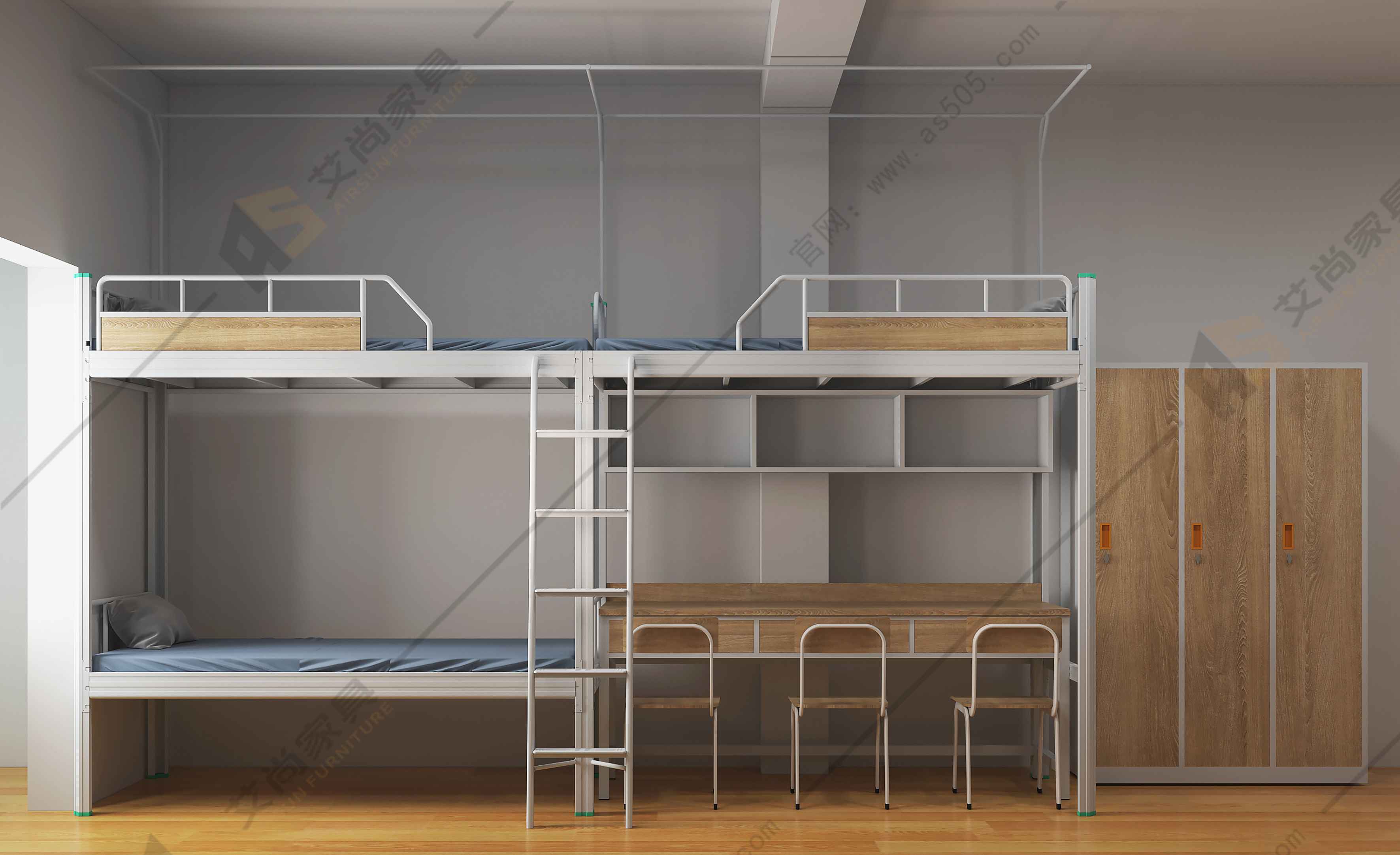 學生宿舍床一般分為木質宿舍床與宿舍鐵架床,材質不同,價錢也會不一樣。現在學生宿舍床多采用的是冷軋鋼材料,更加耐用結實,好打理,承重、耐用性能都很好。艾尚家具學生宿舍床承重500kg,質保十年。