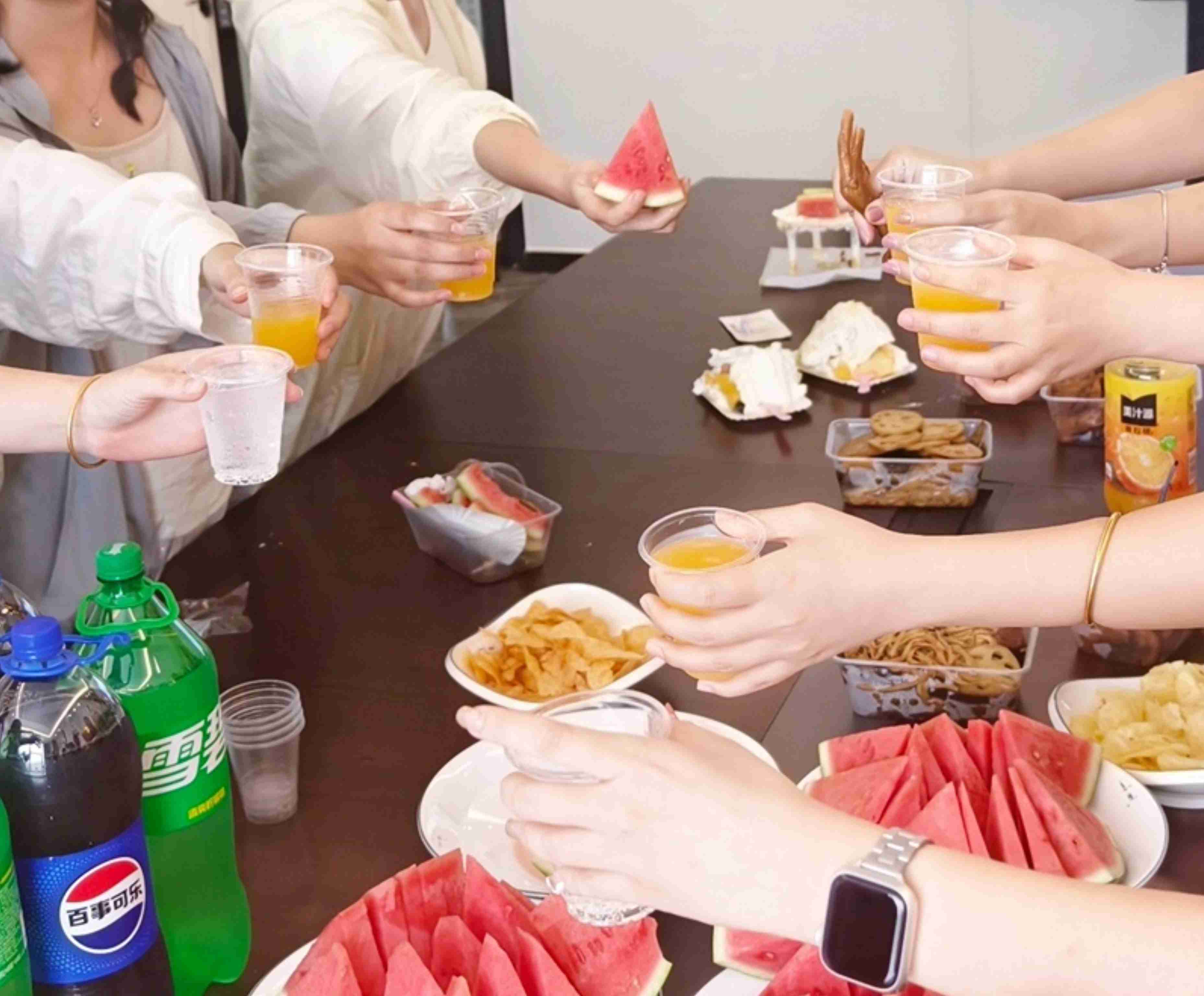 在慶祝的氛圍中,我們為大家準備了各種口味的蛋糕和精致的小吃。大家圍坐在一起,品嘗著美食,分享著快樂,共同度過了一個愉快的時光。美食與甜蜜,讓這場生日會更加溫馨難忘。