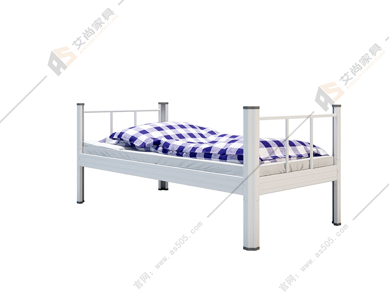 產品介紹: 宿舍單層鐵床,產品常規尺寸1980長1200寬800高mm(可按照客戶宿舍需求定制尺寸),產品整體顏色白色(可根據客戶喜好定制顏色),原材料采用優質冷軋鋼板經特制成型線軋制而成,其立面為中空異形,立柱正面和側面有加強筋,材料厚度為1.2mm(國標)床體承重500-1000kg!產品采用紙箱包裝減少運輸途中受損,產品主要適用于企業、工廠、學校2-4人間宿舍,本產品質保十年!