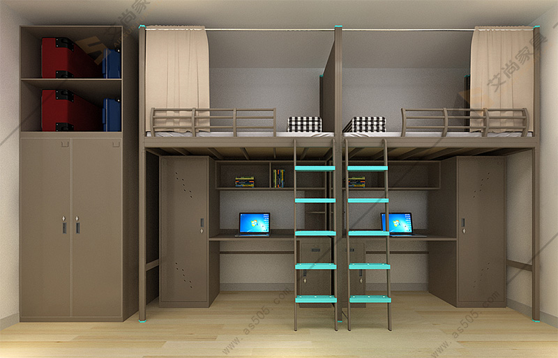 產品介紹: 兩連體中梯雙人位學生雙層床,產品常規尺寸3930長900寬2100高mm(可按照客戶宿舍需求定制尺寸),產品整體顏色:灰色床架搭配灰色柜子(可根據客戶喜好定制顏色),床架:原材料采用優質冷軋鋼板經特制成型線軋制而成,材料厚度為1.2mm(國標)床體承重500-1000kg!產品采用紙箱包裝減少運輸途中受損,產品主要適用于企業、工廠、學校4人間宿舍,本產品質保十年!