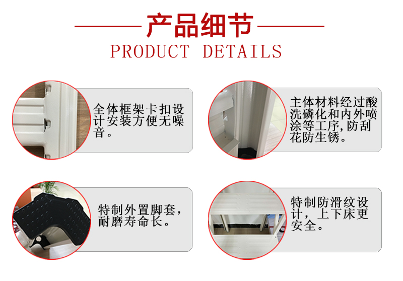床架結構穩固不易變形,承重力好,床體承重力達500KG 根據人體工程學設計,上下舒適自如!