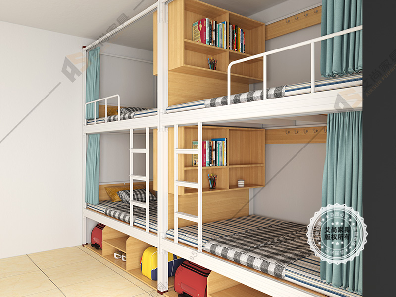 二、艾尚上下鐵架床能夠在宿舍生活中為學生提供溫馨、方便和單獨的空間。不論你傾向于社交還是獨來獨往,上下鐵架床都能夠為你的宿舍生活帶來很多的好處。