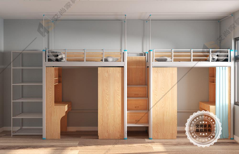 產品介紹: 艾尚家具高低公寓床外觀上高端大氣,并且安全舒適。高低公寓床采用環保0甲醛烤漆,無論悶熱潮濕都恍然如新。 做工設計上,高低公寓床采用卡口式連接,這種連接的優點在于承重性強,穩固性好,上床時非常平穩,不易搖晃,安全舒適,可以適應各種宿舍。
