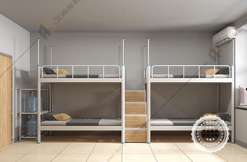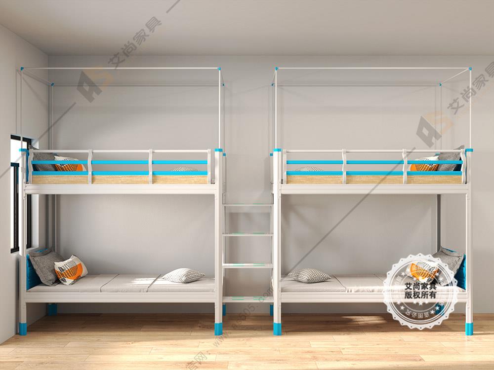 產品介紹: 艾尚家具學校宿舍上下鋪床外觀上高端大氣,并且安全舒適。學校宿舍上下鋪床采用環保0甲醛烤漆,無論悶熱潮濕都恍然如新。 做工設計上,學校宿舍上下鋪床采用卡口式連接,這種連接的優點在于承重性強,穩固性好,上床時非常平穩,不易搖晃,安全舒適,可以適應各種宿舍。