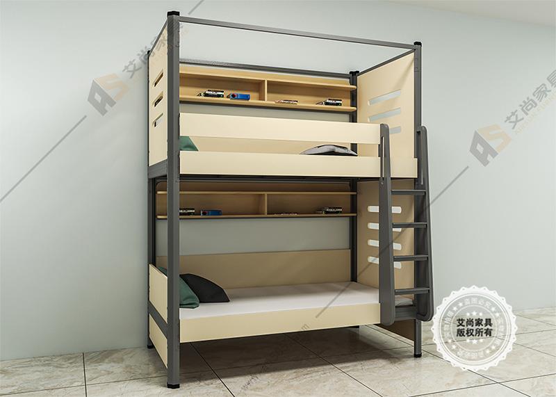 產品介紹: 艾尚家具鐵床上下鋪外觀上高端大氣,并且安全舒適。鐵床上下鋪采用環保0甲醛烤漆,無論悶熱潮濕都恍然如新。 做工設計上,鐵床上下鋪采用卡口式連接,這種連接的優點在于承重性強,穩固性好,上床時非常平穩,不易搖晃,安全舒適,可以適應各種宿舍。